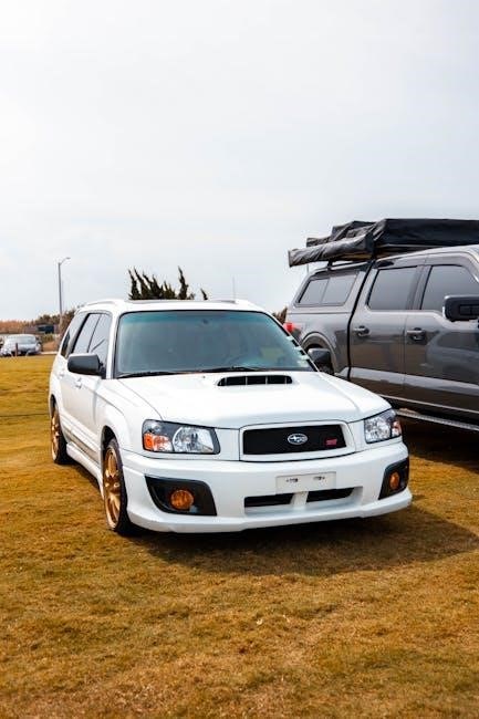 The 2023 Subaru Forester Manual provides guidance for addressing common mechanical issues. It covers topics like oil change procedures, tire pressure checks, and fluid level inspections. The manual also offers troubleshooting tips for issues such as low battery warnings or faulty sensors. By following the step-by-step instructions, owners can resolve minor problems independently, reducing the need for professional assistance. This section emphasizes preventive maintenance and early detection of potential issues to ensure the vehicle runs smoothly and efficiently over time.